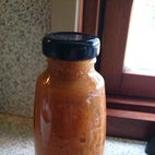 - Reinig een aantal glazen flessen zeer goed. Schenk de saus tot bovenin en schroef er gelijk de dop op. Laat ze koud worden voordat de fles in de koelkast gezet wordt.